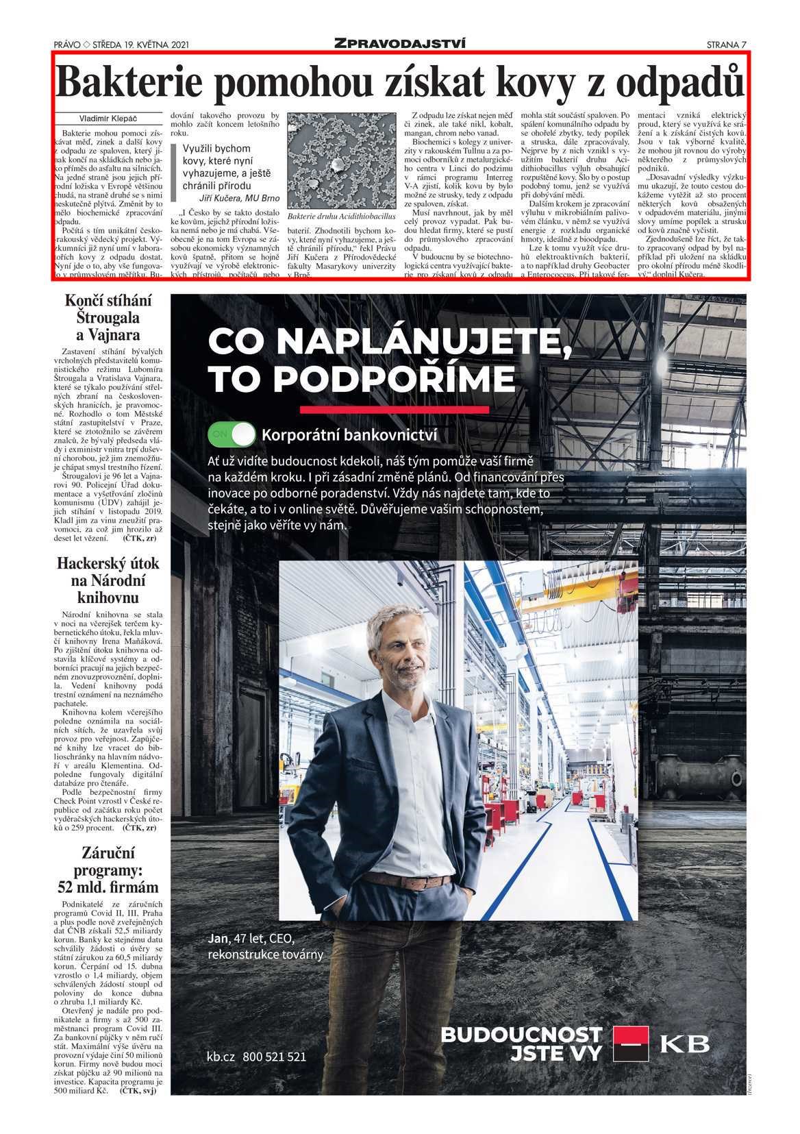 „Naším společným úkolem je nyní převést optimalizované bioprocesy z laboratorního měřítka do většího poloprovozu a zajistit, aby se bakterie na zvýšené koncentrace kovů zvládli adaptovat,“ upřesnil Kučera s tím, že další výsledky představí vědci v létě.